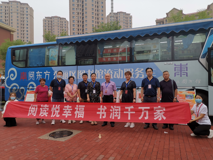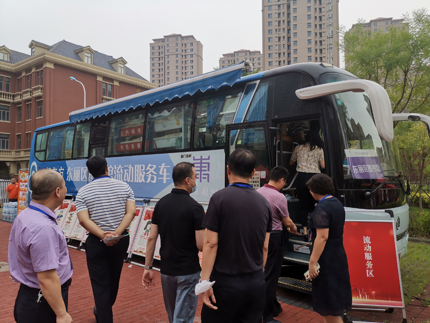为庆祝中国共产党成立100周年,加强在党史学习教育中深入开展“我为群众办实事”实践活动,7月13日上午,东丽区图书馆流动服务车来到新立新市镇丽晟社区参加由区委统战部组织的“六进社区”服务活动,为社区居民提供办证、借还书等文化服务。