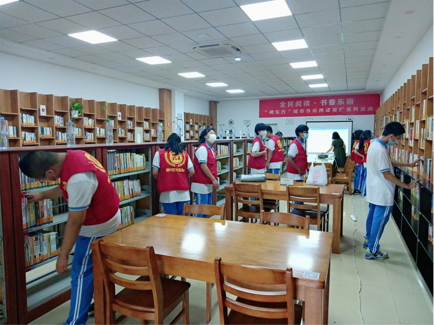 师生们早早来到军粮城城市书房:打扫卫生、整理图书、分类上架、引导读者......所有工作井然有序。