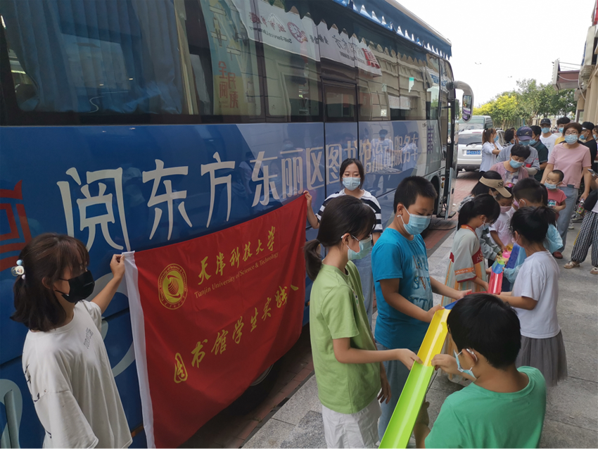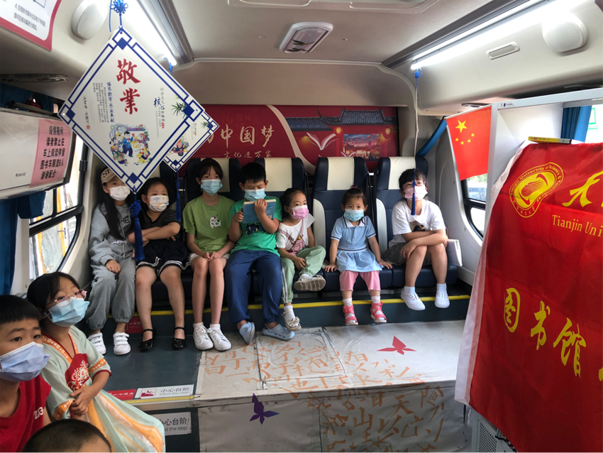 近日,东丽区图书馆流动服务车开进景文轩社区,举办阅读分享活动,本期主题为:《百年潮起共读史,青春建功新时代》。