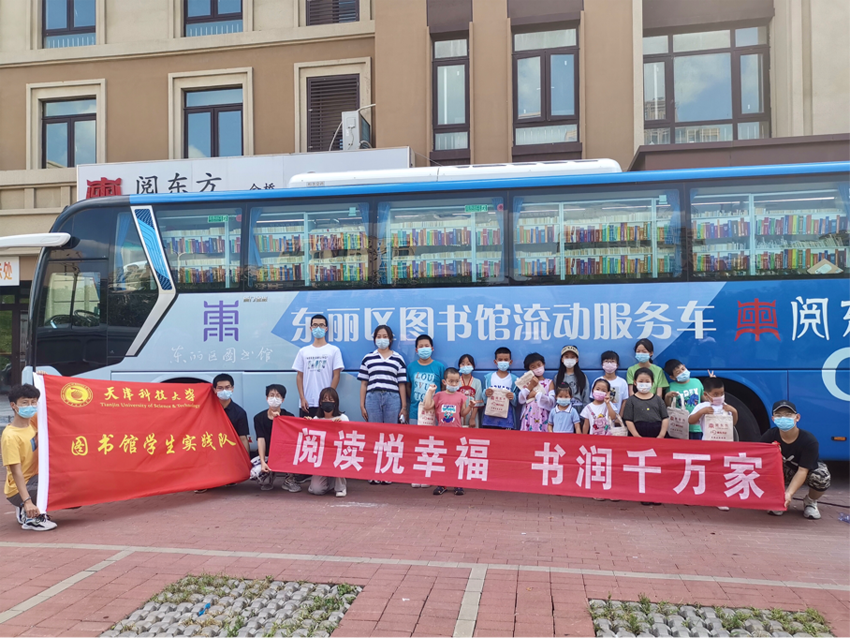 本次活动还特别邀请了天津科技大学图书馆学生实践队的同学们一起,向基层群众和青少年朋友们推广党史经典图书,号召基层群众听党话、感党恩、跟党走。