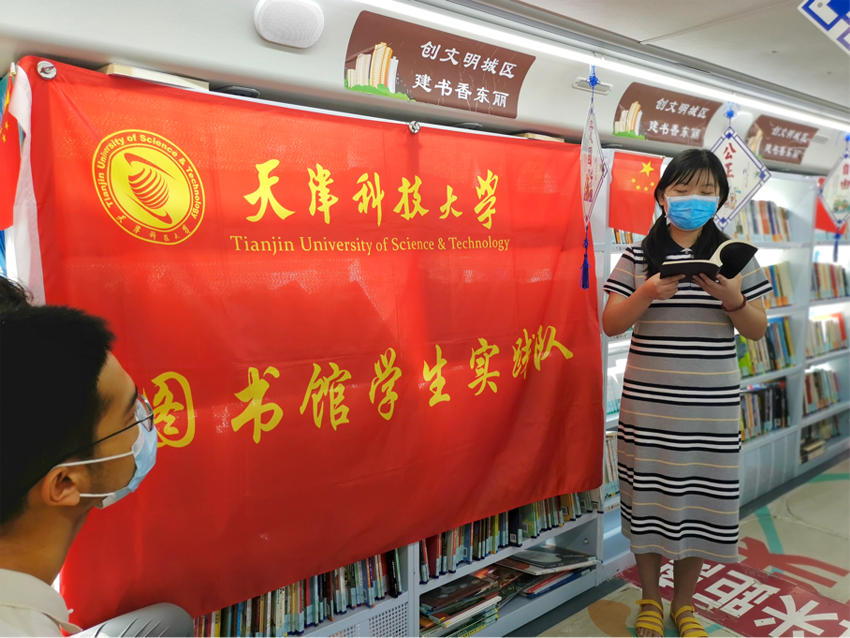 近日,东丽区图书馆流动服务车与天津科技大学图书馆学生实践队在龙泉里社区举办了“百年风华强国有我,科技创新你我同行”阅读分享活动。