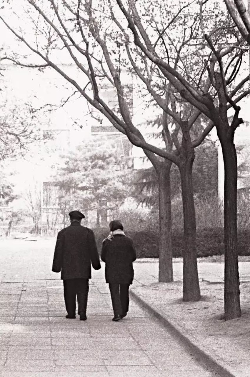 (杨绛、钱锺书,1989年冬在北京三里河宿舍院中散步)