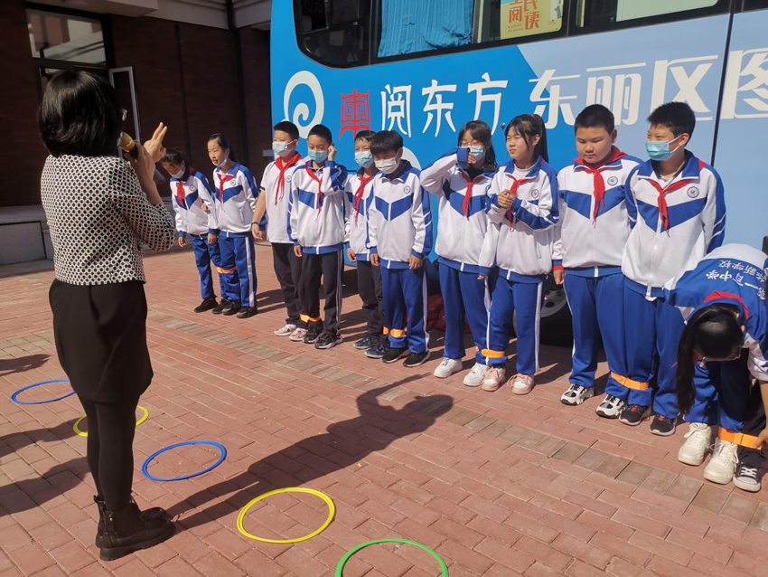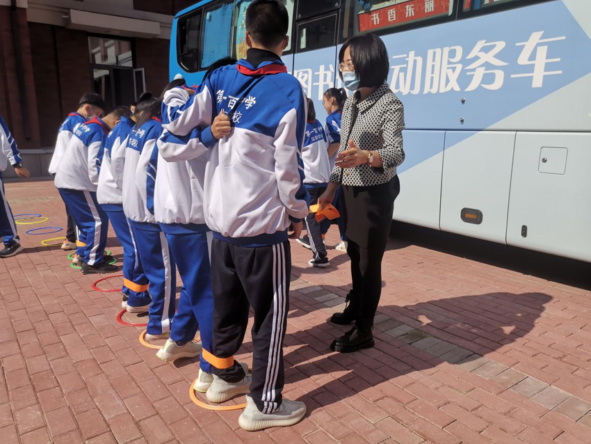 近日,东丽区图书馆流动服务车开进天津市第一百中学华新学校,开展“阅读悦幸福·书润千万家”主题活动:社会情感课之合作的体验。