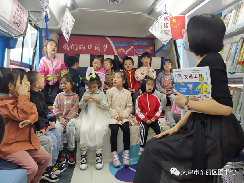 10月14日,东丽区图书馆流动服务来到东丽第一幼儿园,开展了“阅读悦幸福·书润千万家”——交通工具绘本科普阅读活动。