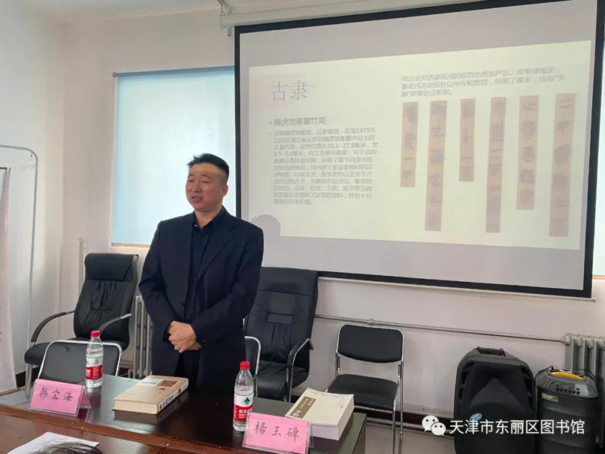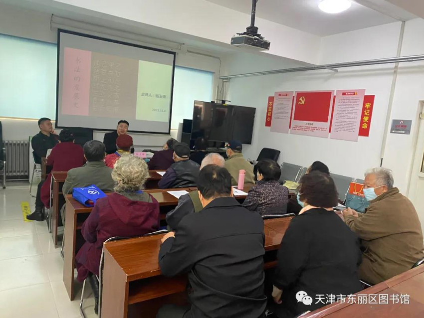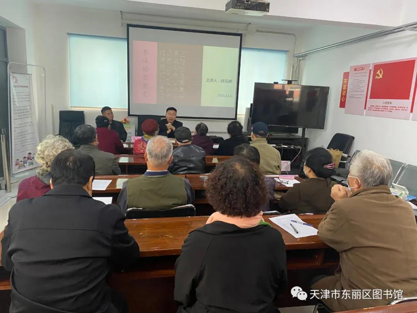 从数千年的中华文明史来看,最具有历史价值的创意是汉字,以及在汉字基础上升华出来的一门艺术——书法艺术。古人给予了书法一个崇高的定义——“字是九重天”说明书法所代表的品格,品味远高于其他艺术门类。近日东丽区图书馆走进丰年里社区文化活动中心一楼培训室,并邀请拜泉书画社秘书长杨玉碑老师为社区书法爱好者们举办以 “文字的演变史”为主题的“津丽大讲堂”公益文化讲座。