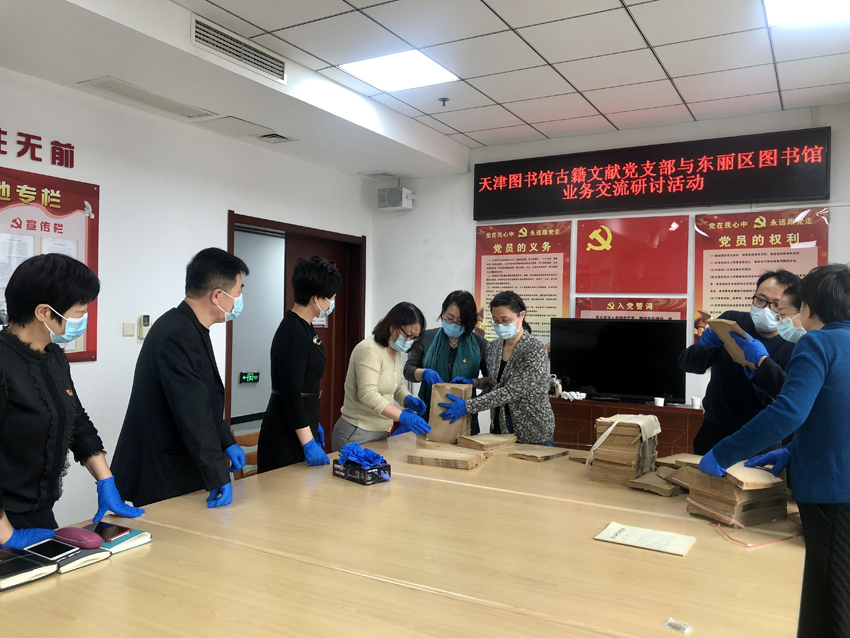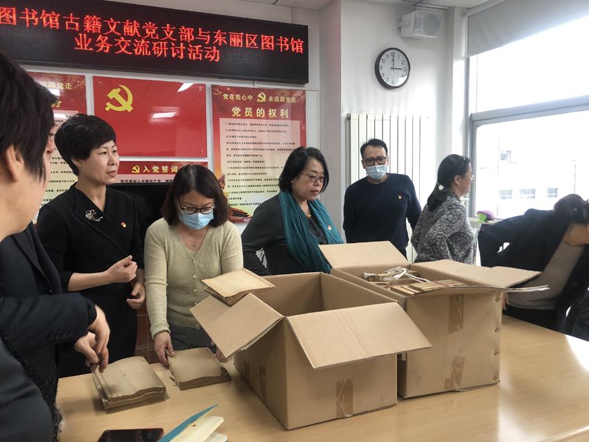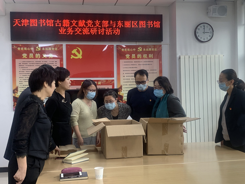 为做好古籍文献的收集、整理、保护和开发利用工作,11月19日,东丽区图书馆邀请天津图书馆古籍文献党支部到我馆开展业务交流研讨活动,进行古籍文献鉴定、整理指导等相关工作。
