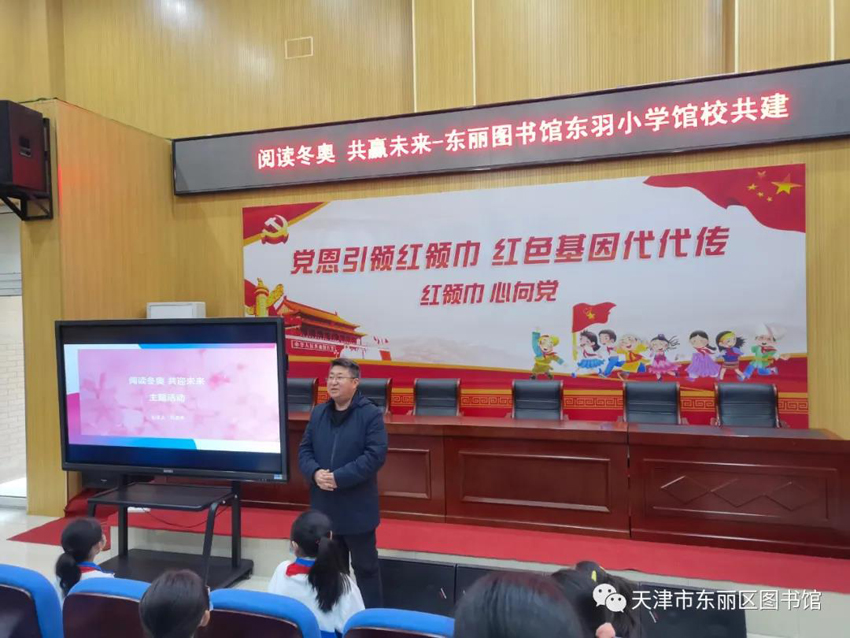 在北京冬奥会来临之际,东丽区图书馆联合东羽小学,共同开展了“阅读冬奥  共迎未来”主题活动。王玉全校长表示:北京冬奥会的举办,将提升我国国际形象、国际影响力,促进全球体育治理行稳致远。作为当代小学生应该更多的了解冬奥会相关知识。
