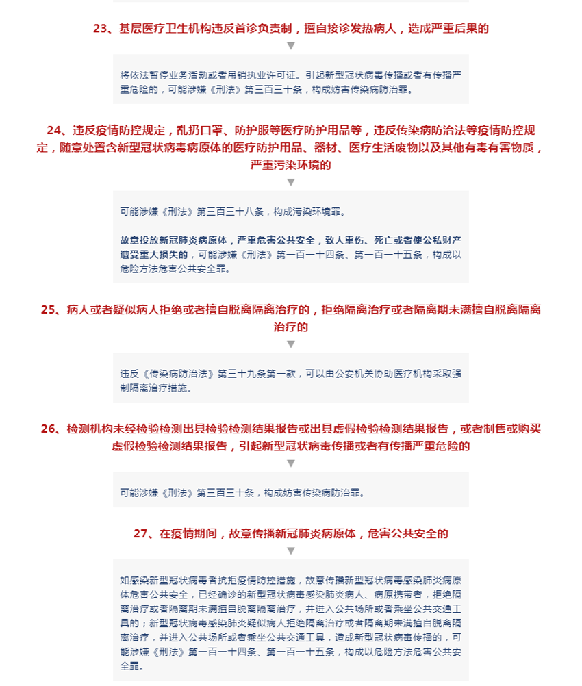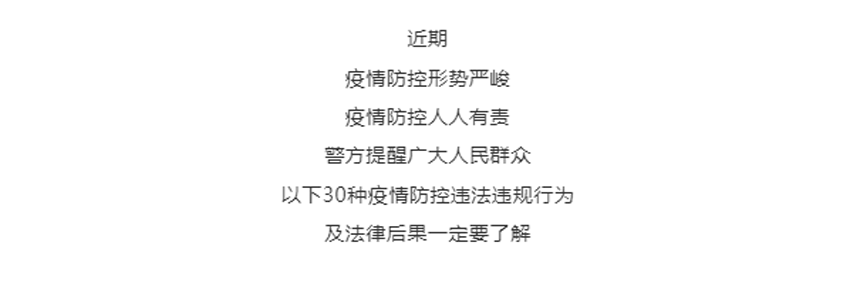 近期疫情形势严峻,30种疫情防控违法违规行为及法律后果!请转发扩散!