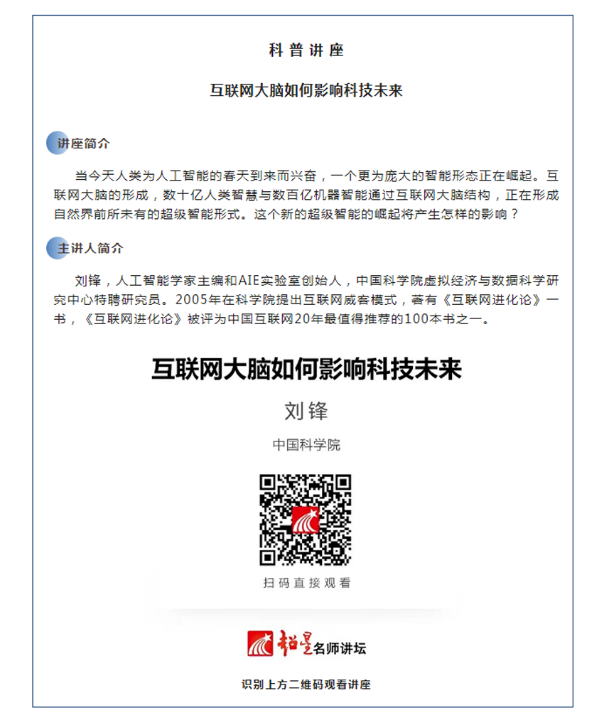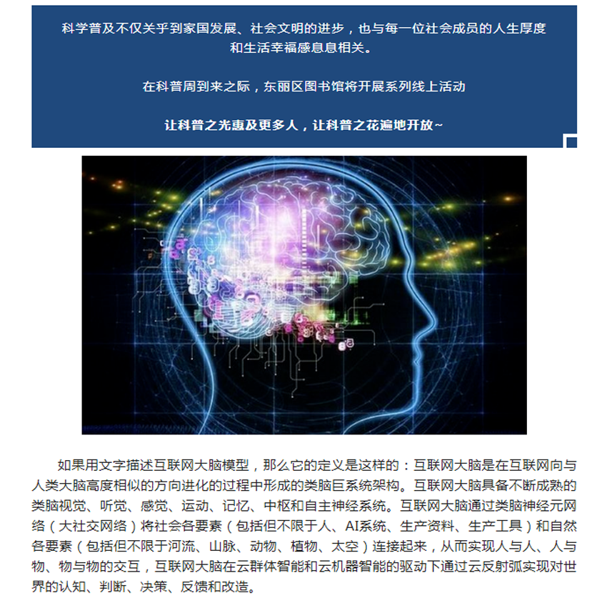 【东丽区2022年全国科技活动周线上科普讲座】| 互联网大脑如何影响科技未来