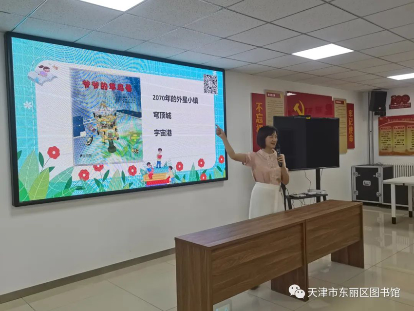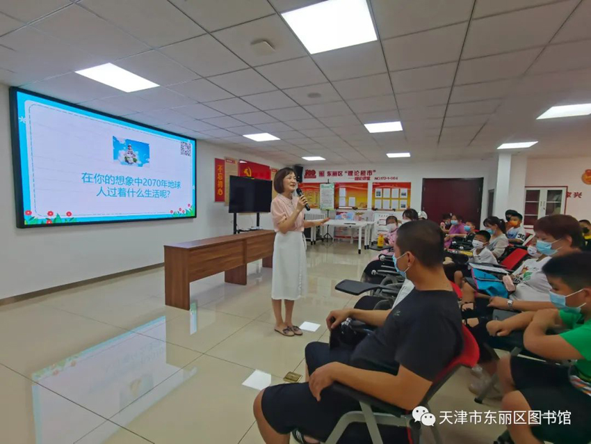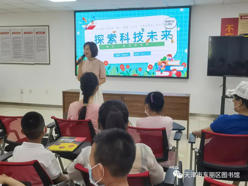 2022年7月13日,图书馆流动服务车来到怡盛里,在社区二楼会议室展开“探索未来科技”主题活动