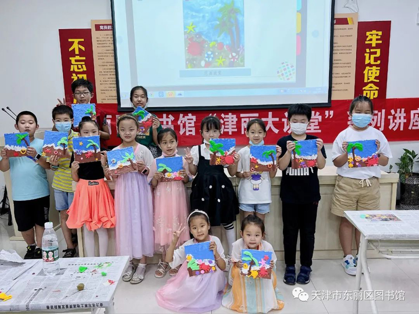为丰富社区未成年人的暑期文化生活,7月14日下午东丽区图书馆邀请全国青少年美院杯优秀指导教师朱彤彤老师来到金钟街溪水湾社区党群服务中心会议室为小朋友们开展以“泥塑系列——夏日海边” 为主题的“津丽大讲堂”文化公益讲座。