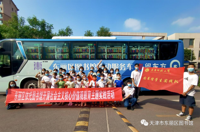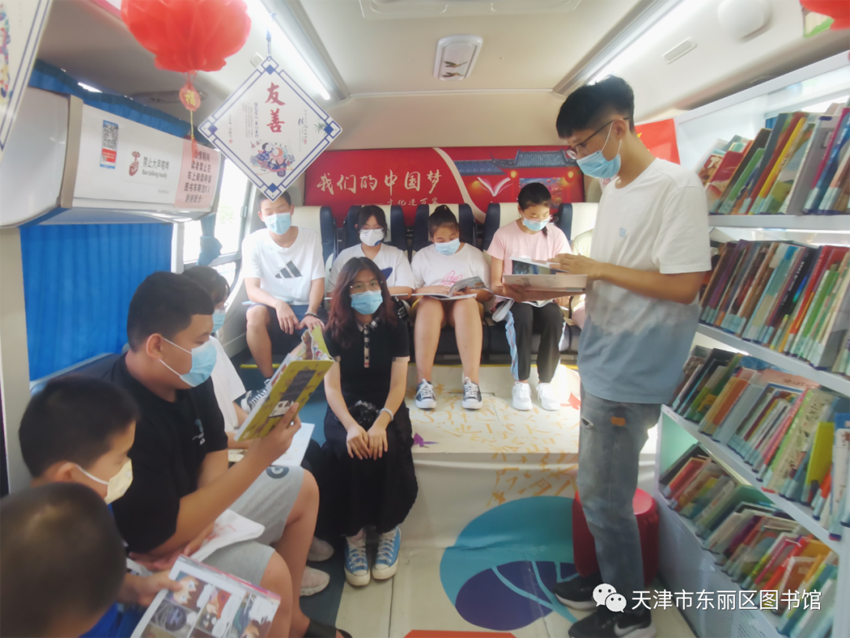 【强国复兴有我】|东丽区图书馆流动服务车联合天津科技大学图书馆学生实践队在怡盛里社区开展活动
