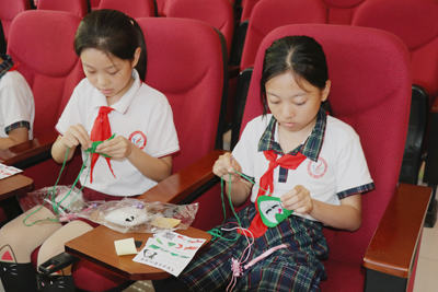 有的同学第一次拿针, 针脚虽然歪歪扭扭,却也做得像模像样;有的同学相当心灵手巧,还用彩珠、中国结对自己制作的香囊进行了装饰,引得老师、同学们赞叹不已;很多学生都觉得这样的活动十分有趣,第一次用一针一线缝制出精美的香囊,感觉很特别、也很开心。