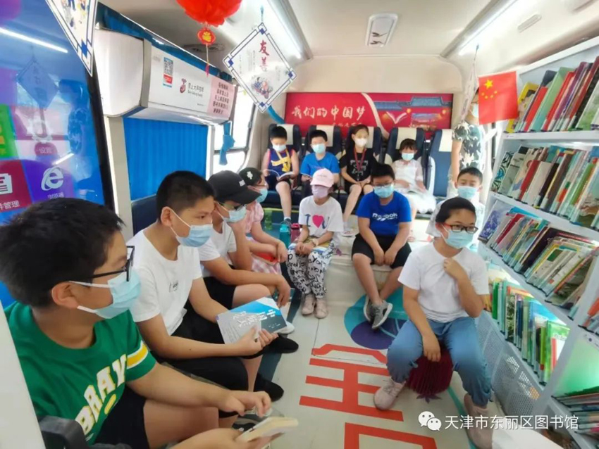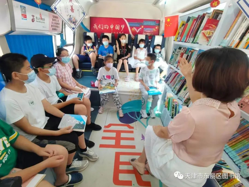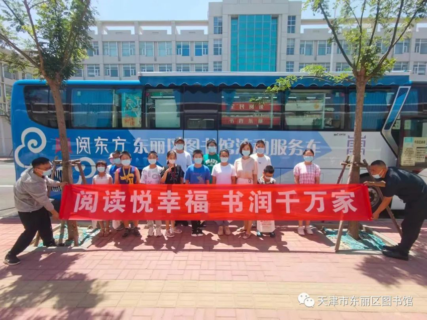 今日,东丽区图书馆流动服务车来到万隆花园社区,开展以“人类科技的下一站”为主题的暑期特别活动。