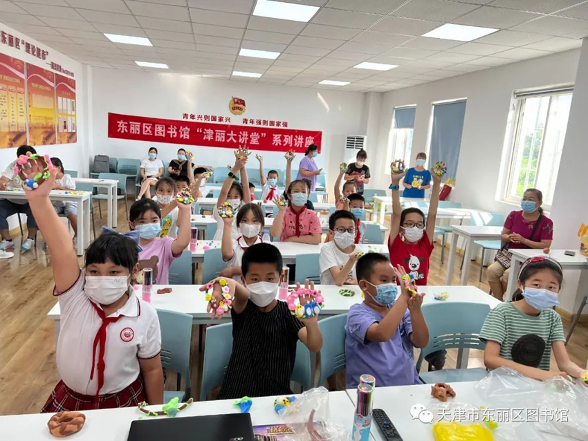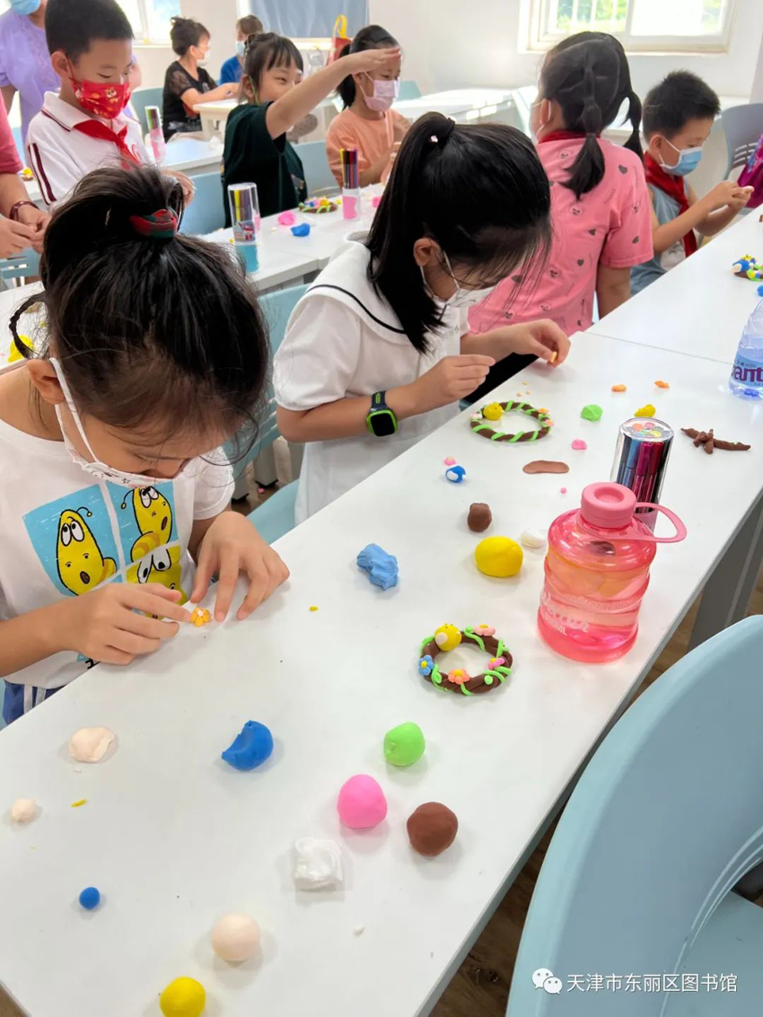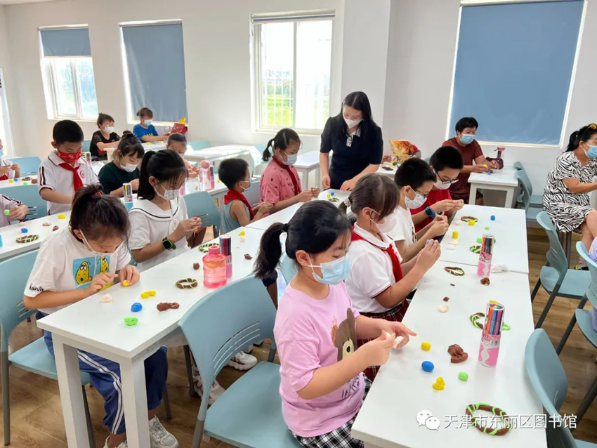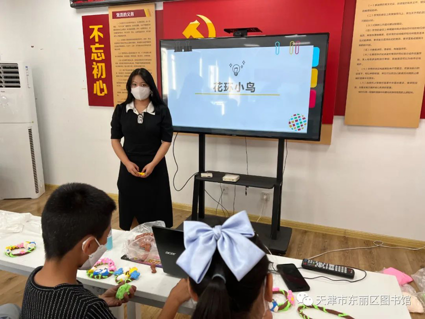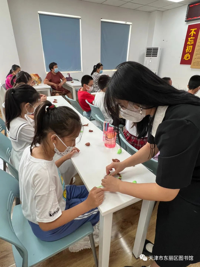 为了激发孩子们无限的想象,体验创意的乐趣,8月15日下午东丽区图书馆来到万新街欣园党群服务中心二楼并邀请全国青少年美院杯优秀指导教师朱彤彤为青少年及家长们举办了一场以“泥塑系列——花环小鸟”为主题的“津丽大讲堂”文化公益讲座