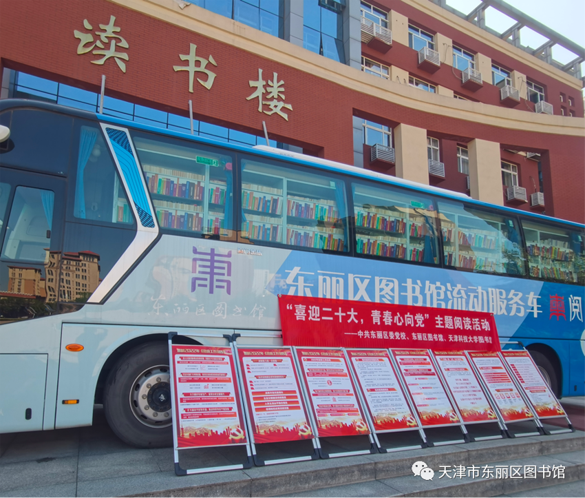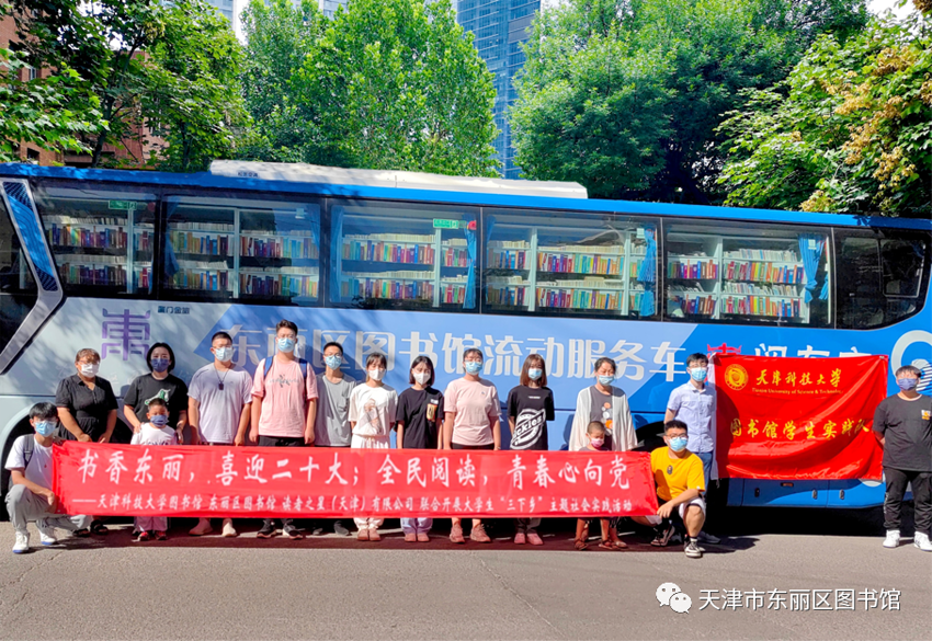 书香东丽,喜迎二十大;全民阅读,青春心向党。近日,东丽区图书馆流动服务车联合天津科技大学图书馆学生实践队走进多个街道社区开展“喜迎二十大,青春心向党”主题阅读推广活动。