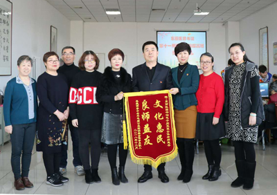 12月25日上午,区图书馆第十一期“零基础”公益电脑培训班结业,培训班50名学员联合为老师和志愿者们送来一面“文化惠民 良师益友”的锦旗,以感谢图书馆对培训的精心组织和优质服务。图书馆馆长张广明接过锦旗开心地说:“送锦旗的行动充分肯定了培训班的成果,也是对我们今后开展工作的一种激励和鞭策。”