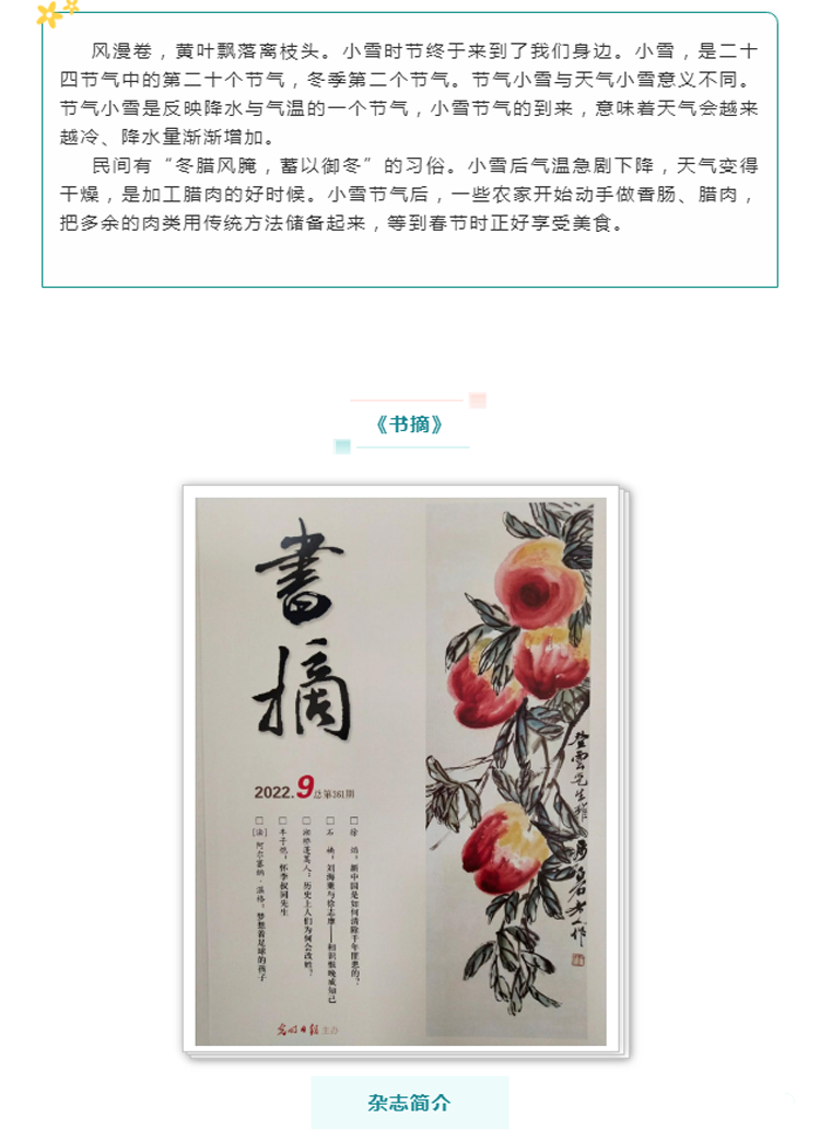 品读·精品期刊推介第十期——更喜寒江飞小雪 万家灯火话丰年