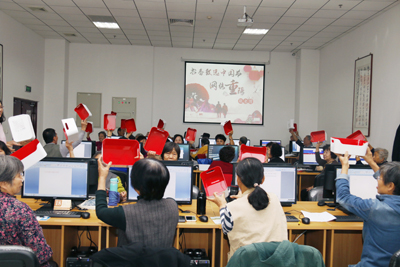 本次活动共分为三个部分。首先是“文化重阳知多少?”网络答题赢礼品活动。老人们在热心网友、爱心志愿者的帮助下登录答题平台,随机抽取20道题目,边学边答,兴趣盎然;活动第二部分是“指尖传情·银发触网”网络安全知识讲座。针对广大老年人在享受互联网智能化带来各种便利的同时,也面临着各种互联网陷阱的威胁,主讲老师向大家讲解了网络诈骗的一般手法以及预防手段,通过聆听讲座老年人们纷纷表示受益匪浅,并希望今后图书馆能有更多此类的讲座以提升自己的网络安全素养;活动第三部分是“爱满重阳节,情暖老人心”座谈。座谈会上,老人们畅所欲言,纷纷叙述了自己心中的重阳佳节,在分享中排除忧虑的情绪,享受节日的乐趣。