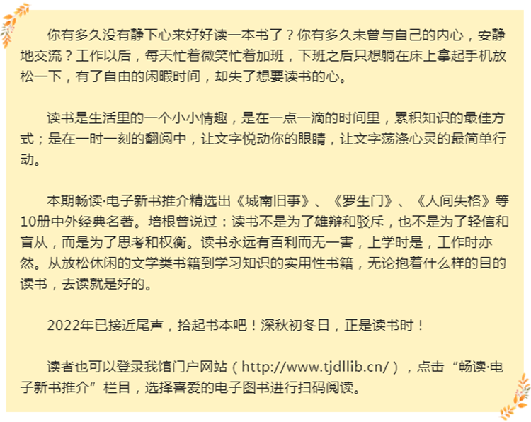“畅读·电子新书推介”2022年度第8期——深秋初冬日,正是读书时