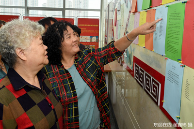 此次展览共展出19首原创诗歌作品,展览区域用彩色纸张进行布局,彰显了节日氛围。