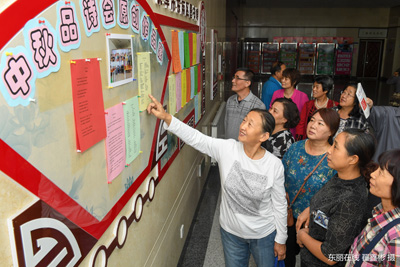 9月27日上午,在图书馆二楼共享大厅,“古风流韵”传统系列活动——中秋品诗会原创作品展览正在这里举行。