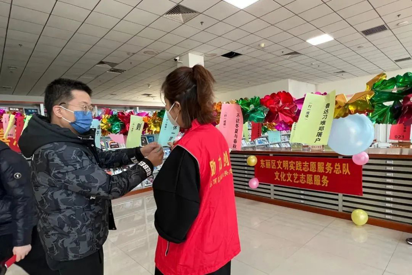 为丰富和活跃读者文化生活,营造良好的传统节日文化氛围,2月4日上午,东丽区图书馆文化志愿者助力“灯火元宵 繁花盛世”主题元宵灯谜喜乐会活动,为读者带来丰富的精神贺礼,让读者及时地享受到丰盛的“文化新年饭”。该活动品牌创立于2016年,自开办以来引起了强烈反响,受到了广大读者朋友们的热烈欢迎,取得了广泛支持。