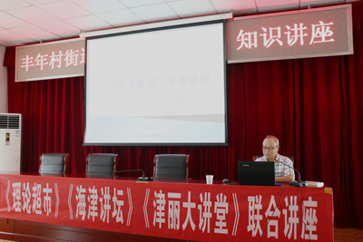 为了让大家了解姓名蕴含的大量文史典故和传统文化知识,8月28日上午,东丽区图书馆《津丽大讲堂》联合天津市社科联《理论超市》、天津图书馆《海津讲坛》邀请天津师范大学教授谭汝为老师作为主讲嘉宾,在丰年村街道办事处进行了一场题为《姓名与文化》的讲座,吸引了周边社区居民前来聆听。