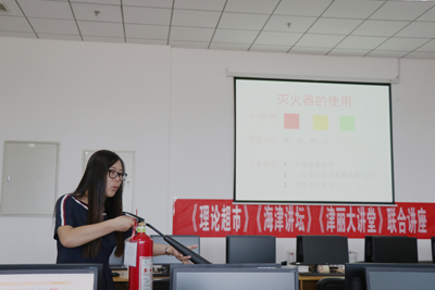 讲座中,李老师结合大量典型火灾案例,警示大家重视消防安全,加强消防安全管理。围绕消防常识、防范火灾、应急疏散等基本消防知识进行讲解,并对防毒面具、灭火毯、灭火器等器材的正确使用方式进行了详细的介绍。