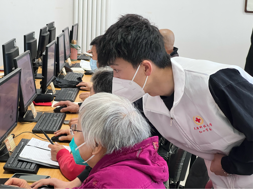 中老年“零基础”公益电脑培训班作为东丽区图书馆的活动品牌,至今已连续开展六年,数千名中老年读者从中获益;本期“博爱助老 青春行动”——中老年“零基础”公益电脑培训班由东丽区图书馆、天津科技大学图书馆、天津科技大学红十字会联合主办,培训班在与高校图书馆携手为学生提供广阔实践平台的同时,切实丰富中老年读者精神生活,进一步锻造“文化惠民”品牌,提高中老年读者电脑、手机等现代电子产品的操作水平,使其享受信息时代的便捷和乐趣。