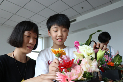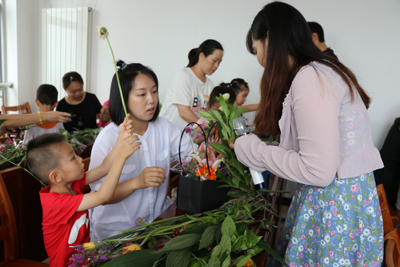 ——东丽区图书馆“书香雅韵”小课堂献礼花篮制作主题活动
