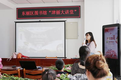 7月1日上午,为纪念中国共产党成立97周年,东丽区图书馆“津丽大讲堂”联合“书香雅韵”小课堂邀请赵薇老师在我馆五楼报告厅进行了一场题为“永远跟党走”的讲座。