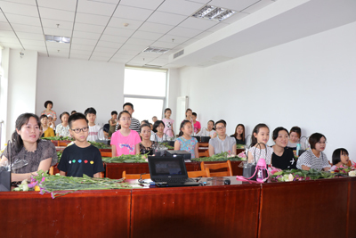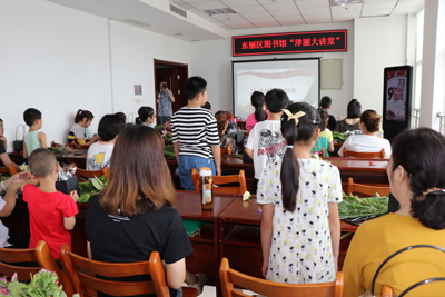 讲座现场激情澎湃,小朋友们迫不及待地和父母投入到献礼花篮制作活动中。