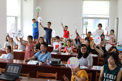 活动结束小读者们欢快的举起自制团扇拍照留影。