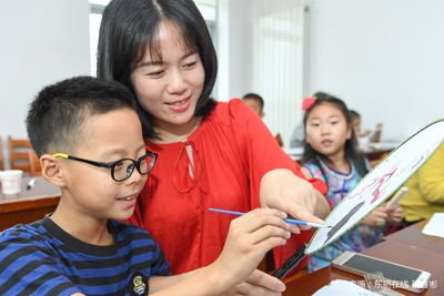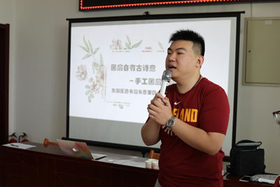 首先志愿者老师介绍中国“扇”字结构及由来,引伸出生活中常见的扇子分类。带领小朋友思考我国扇文化,注意生活中的小细节。然后,志愿者老师向读者推荐《中国最美古诗词(田园篇)》《中国最美古诗词(边塞篇)》等诗集,便于读者课下学习。