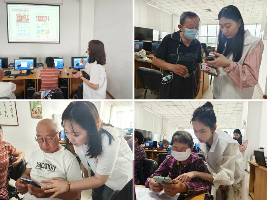 5月19日,在东丽区第37届科技周到来之际,东丽区图书馆联合天津科技大学图书馆,组织馆员和学生志愿者在图书馆电子阅览室面向中老年读者开展“智慧阅读”推广活动,帮助老人紧跟时代发展步伐,享受区图书馆丰富的线上线下资源。