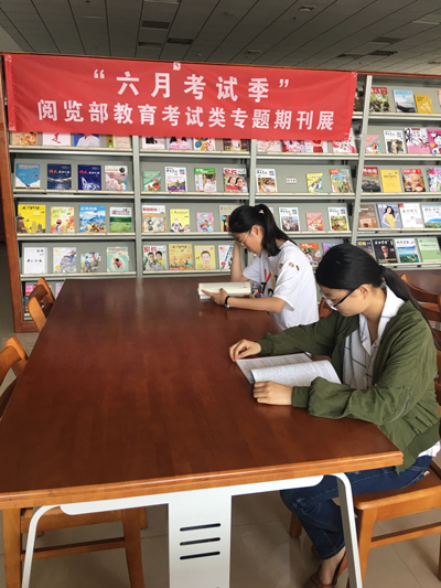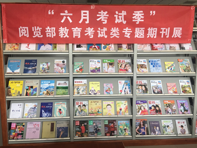 每年的6月可以说是名副其实的考试季,高考、中考、小升初——三联考紧紧相连,都集中在这个6月里。为此,综合阅览部于六月初在报刊阅览室开辟专架,推出了以“六月考试季”为主题的教育考试类专题期刊展,共展出了《作文成功之路——高中》、《初中生必读》、《作文通讯——初中版》、《中学生百科——大语文》、《家长》、《英语学习》、《EC英语角》、《全国优秀作文选——高中》、《少年写作·疯狂阅读》、《家庭教育导读》、《小学生作文》等30余种50余册教育考试类的2018年最新期刊。展览期间吸引了许多家长和学生前来观展、阅读,家长们纷纷表示展出的期刊可读性强、信息量大,内容新颖,对今年参加考试的孩子很有帮助。