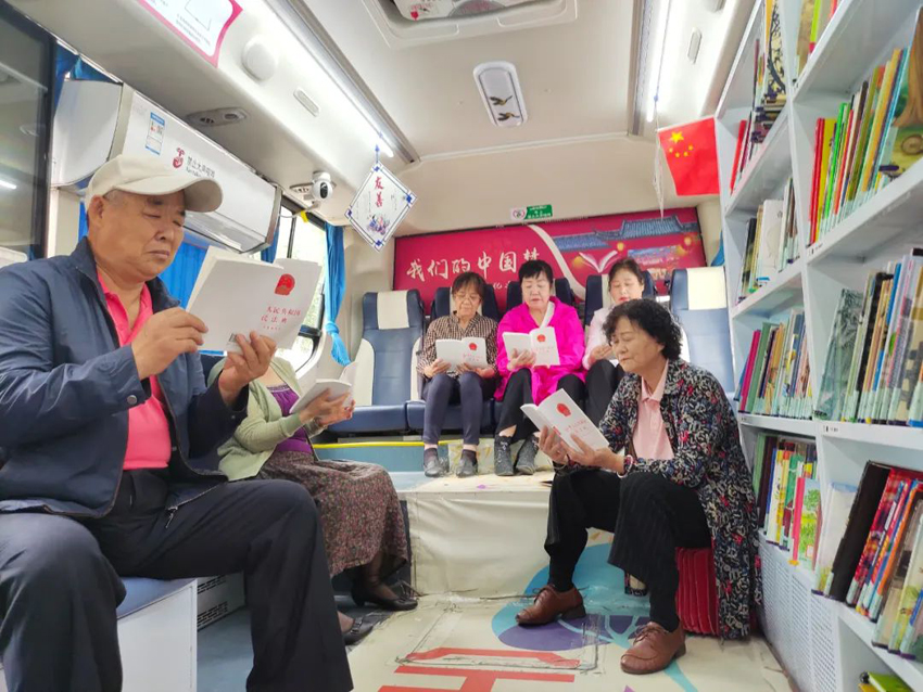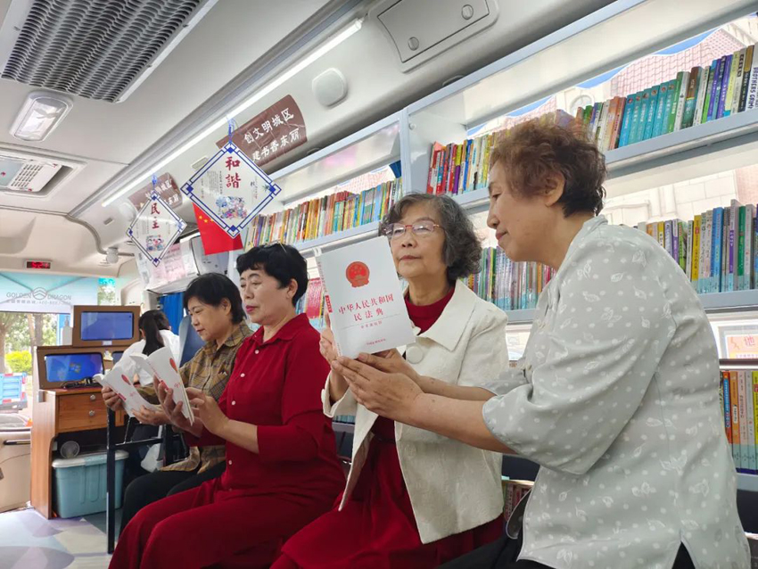 近日,东丽区图书馆流动服务车开进新立街道,围绕社会主义核心价值观——“‘典’入民心 与法同行”主题进行了民法典法治宣传活动,十多位读者参与此次活动。