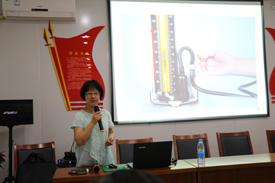 讲座伊始,王蕾老师从高血压的成因入手,通过详实的PPT课件吸引了到场居民的目光。随后重点讲解了高血压的诱发因素、高血压患者的日常调护、合理膳食、根据自己身性做锻炼等方面的内容,并总结出关键的一点:健康的状态要靠“自己的毅力”去体现。