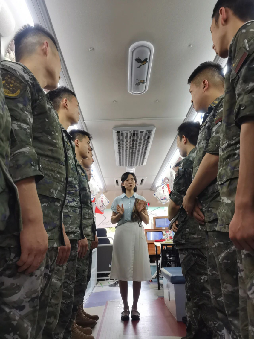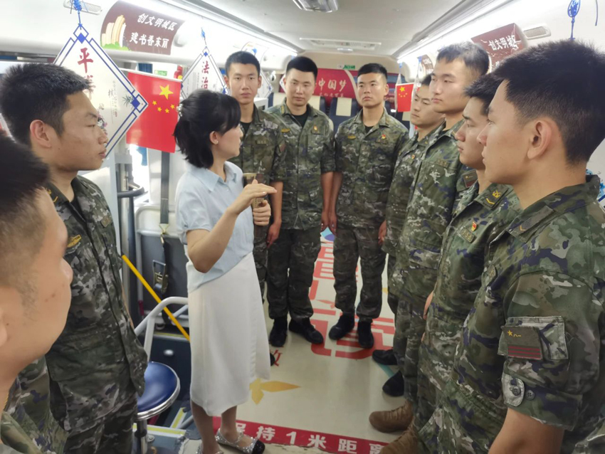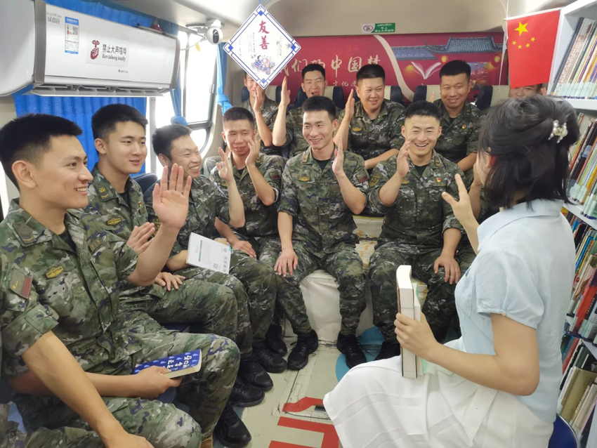 八一建军节前夕,流动服务车开进了武警天津总队执勤第四支队,图书馆工作人员和部队官兵一起开展了 “喜迎八一建军节 袅袅书香飘军营 共筑中华强军梦”活动,活动在送文化进军营的同时,进一步增强了军民鱼水情。