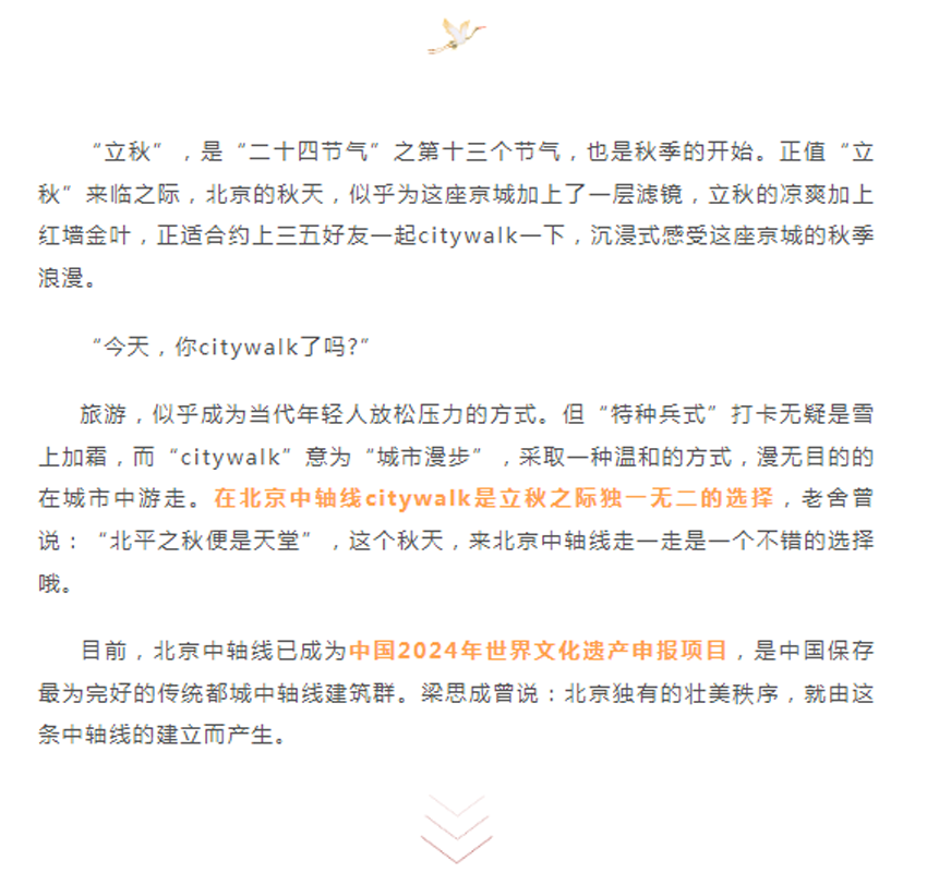立秋来临,来北京中轴线city walk一下!