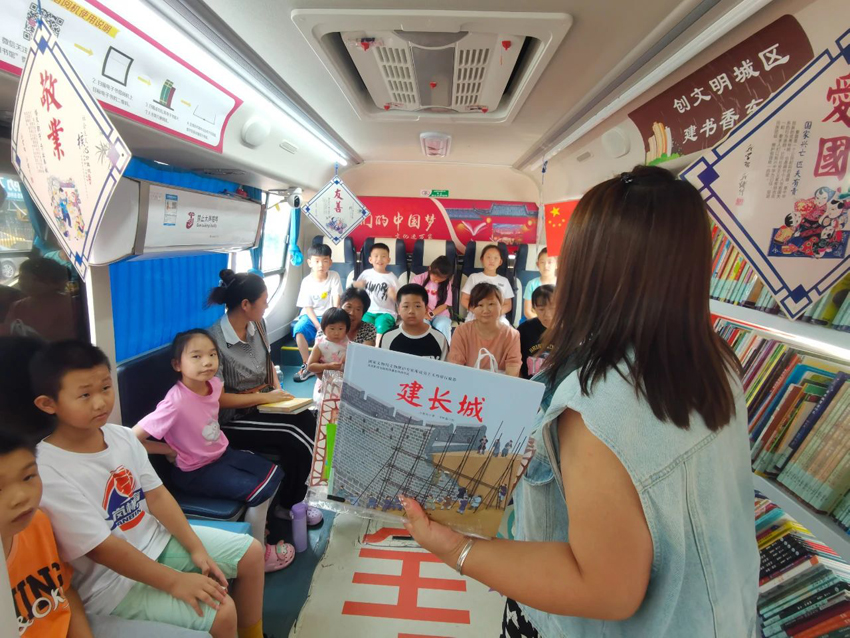 近日,东丽区图书馆流动服务车在无瑕街道开展“亲子共读绘本《建长城》古诗词贴画”活动,吸引了15位读者参加。