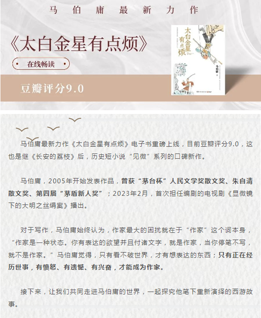 豆瓣评分9.0,马伯庸最新力作《太白金星有点烦》重磅上线