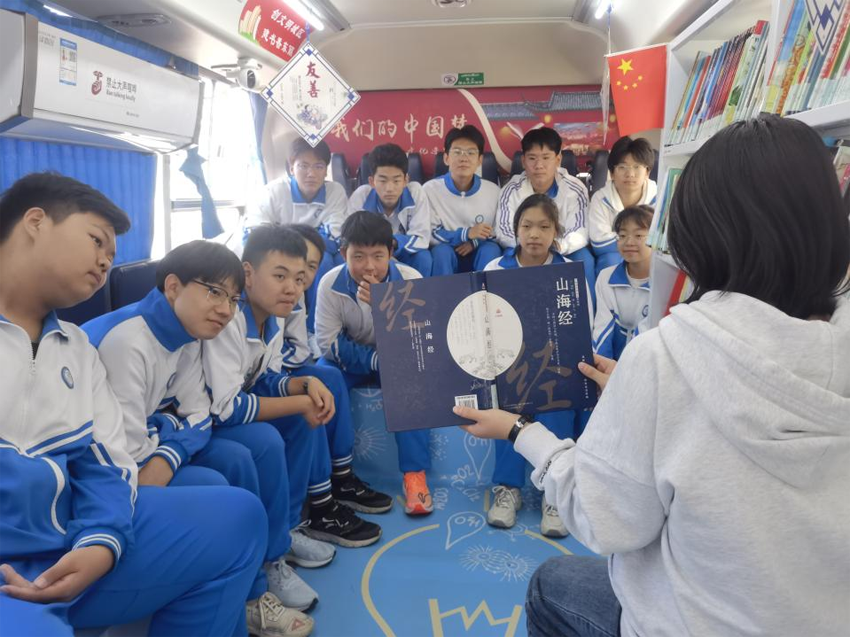 为营造积极健康的全民阅读氛围,引导青少年形成爱读书的良好习惯,培育青少年文化自信自强,近日,东丽区图书馆流动服务车开进程林中学,和广大同学们一起开启了一场传统名著《山海经》的阅读分享活动。