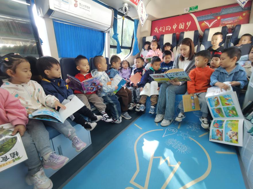 为全面深入地推进全民阅读行动,弘扬“爱读书、善读书、好读书”的全民阅读优良传统,丰富人民群众精神文化生活。近日,东丽区图书馆流动服务车开进丰年幼儿园,与小朋友们一起开启了一场“同读一本书之《黄色魔法车》”的主题阅读活动。