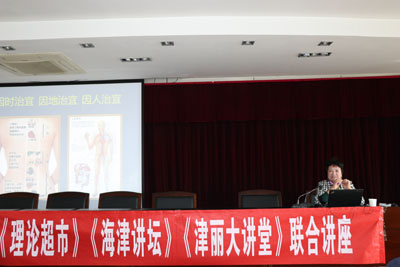 由为增强大众对健康的关注,传播中医养生保健知识,提高大众健康水平,4月17日下午,东丽区图书馆《津丽大讲堂》、天津图书馆《海津讲坛》、天津市社科联《理论超市》联合公益讲座邀请了著名中医卞学珍老师作为主讲嘉宾,在万新街道办事处进行了一场题为《名中医谈养生》的讲座,百余名社区居民聆听了此次讲座。