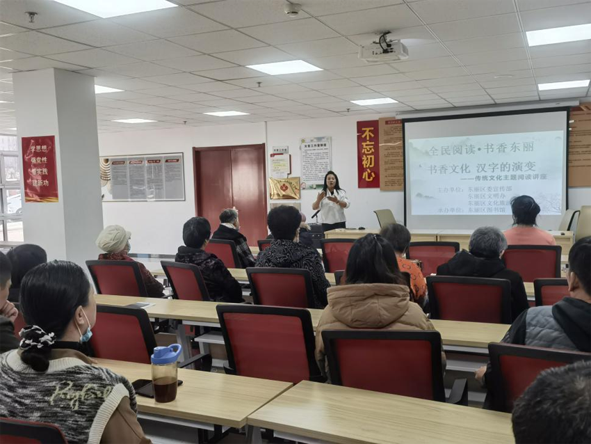 “银龄阅读,金色年华”。为进一步丰富老年人文化生活、推动大众文明建设,营造爱读书、善读书、读好书、的良好氛围,近日,东丽区图书馆流动服务车开进丽昕社区,与老人们开启了一场“书香文化 汉字的演变”传统文化主题阅读活动。