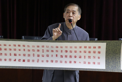 李老师从中国传统文化的特点出发,主要从汉字与文学、史学两个方面详尽地介绍了中国优秀传统文化的独特之处,带大家欣赏了《中华五千年印谱》手卷。
