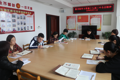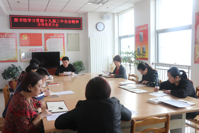 3月12日上午,东丽区图书馆在四楼党员活动室召开学习贯彻十九届三中全会精神的会议,会议由支部书记张广明主持,全体党员参加。