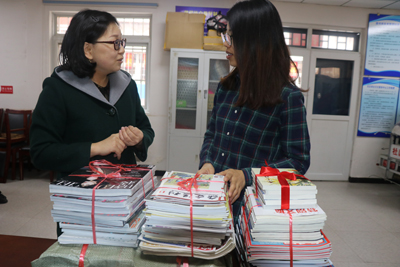 我馆工作人员把包含文学、教育、养生保健图书和小说选刊、民间故事、都市丽人等期刊150册无偿送给津门里社区分馆。